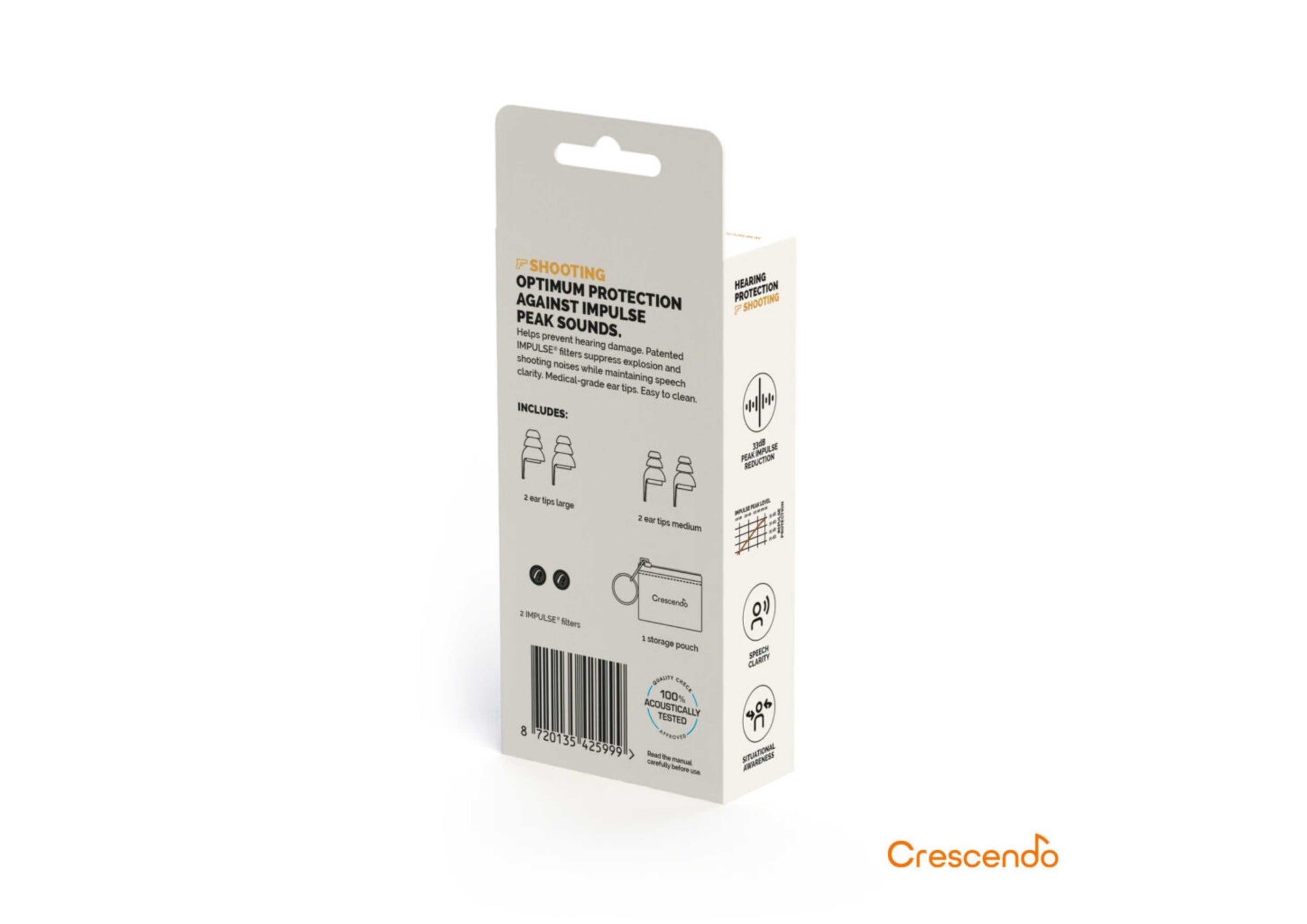 De Crescendo Eco Shooting gehoorbescherming is speciaal ontworpen voor schutters en jagers. De geavanceerde filters dempen schadelijke geluiden van schoten, terwijl belangrijke omgevingsgeluiden hoorbaar blijven. Hierdoor blijft u alert en beschermd zonder in te leveren op bewustzijn en communicatie.